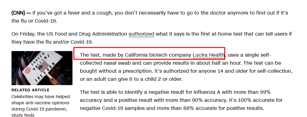 1. 루시라 헬스는 펜데믹 시절 진단키트로 돈을 많이 벌었다.
