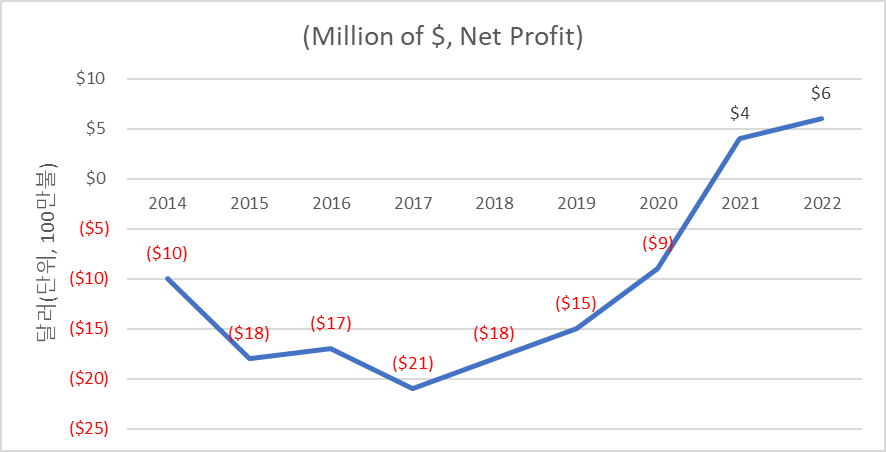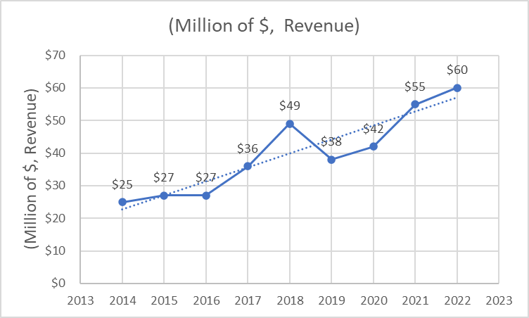 - 2022년 전체 매출은 이전 연도 5510만 달러에서 9% 증가한 6,000만 달러로 증가했다.