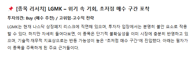 ๐ [์ข ๋ชฉ ๋ฆฌ์์น] LGMK – ์๊ธฐ ์ ๊ธฐํ, ์ด์ ์ ๋งค์ ๊ตฌ๊ฐ ํฌ์ฐฉ