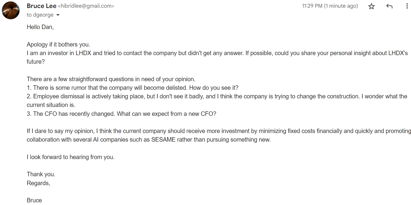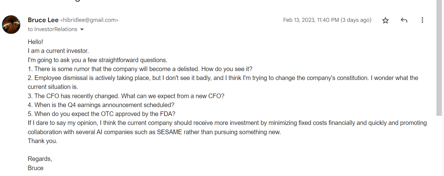 예전 CFO에게 그냥 이메일 문의를 해본다.